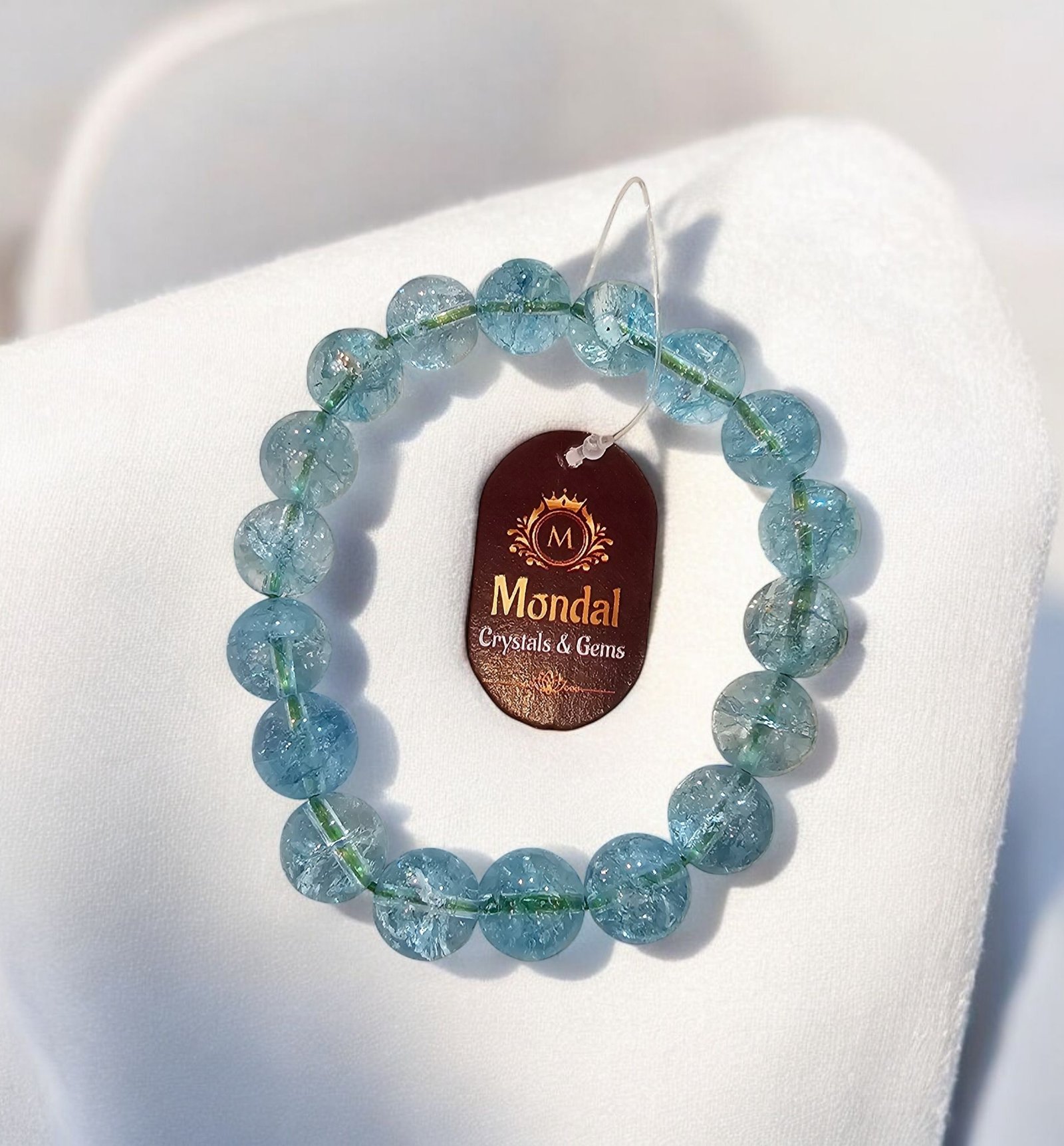 🌊 এই টপ কোয়ালিটি ১২মিমি প্রাকৃতিক অ্যাকোয়ামারিন ক্রিস্টাল ব্রেসলেট আপনার জীবনে আনে শান্তি ও আত্মবিশ্বাস।