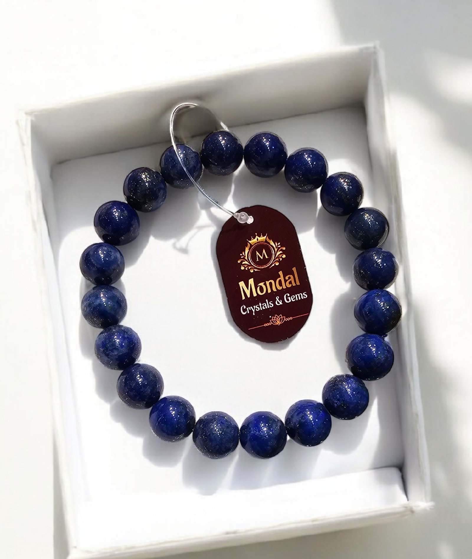 💙 এই টপ কোয়ালিটি ১২মিমি প্রাকৃতিক ল্যাপিস লাজুলি ক্রিস্টাল ব্রেসলেট জ্ঞান, সত্য ও মানসিক প্রশান্তির প্রতীক।